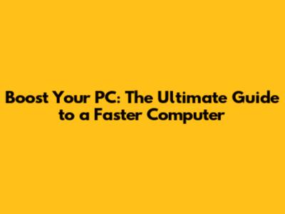 Boost Your PC: The Ultimate Guide To A Faster Computer