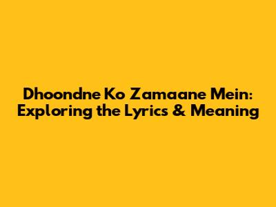Dhoondne Ko Zamaane Mein: Exploring The Lyrics & Meaning