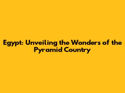 Egypt: Unveiling The Wonders Of The Pyramid Country