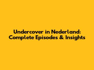 Undercover In Nederland: Complete Episodes & Insights