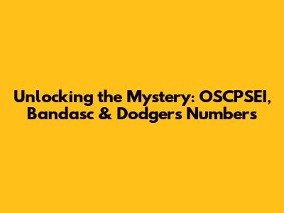 Unlocking The Mystery: OSCPSEI, Bandasc & Dodgers Numbers