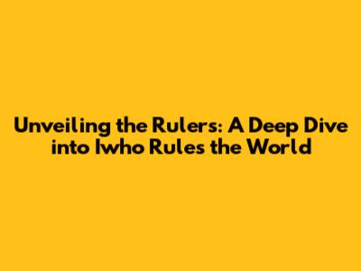 Unveiling The Rulers: A Deep Dive Into 'Iwho Rules The World'
